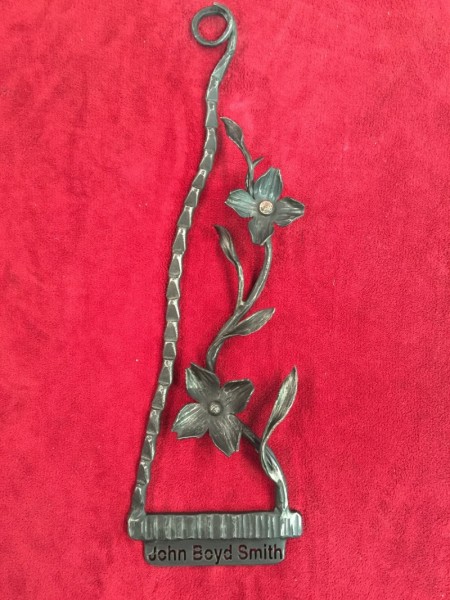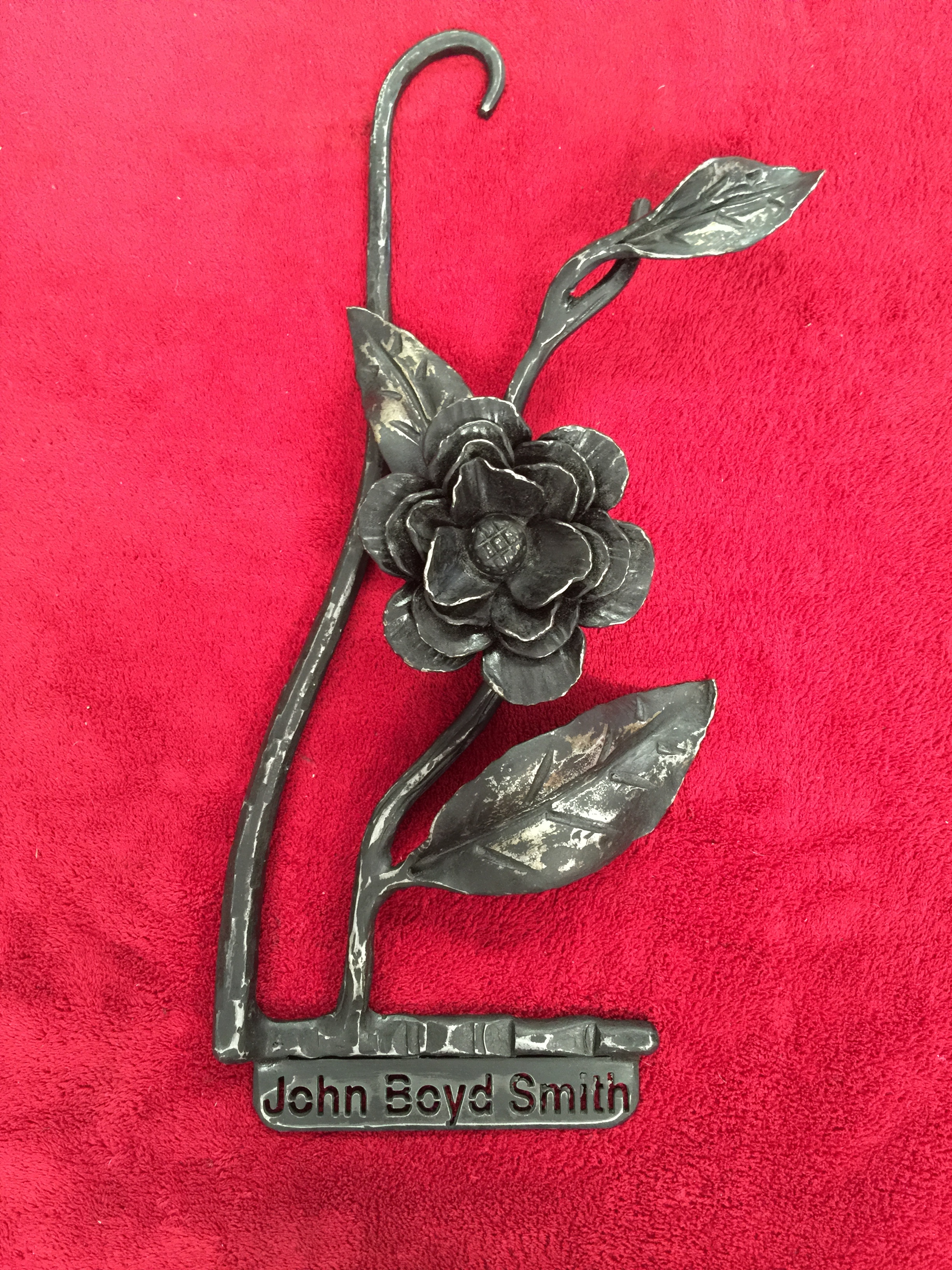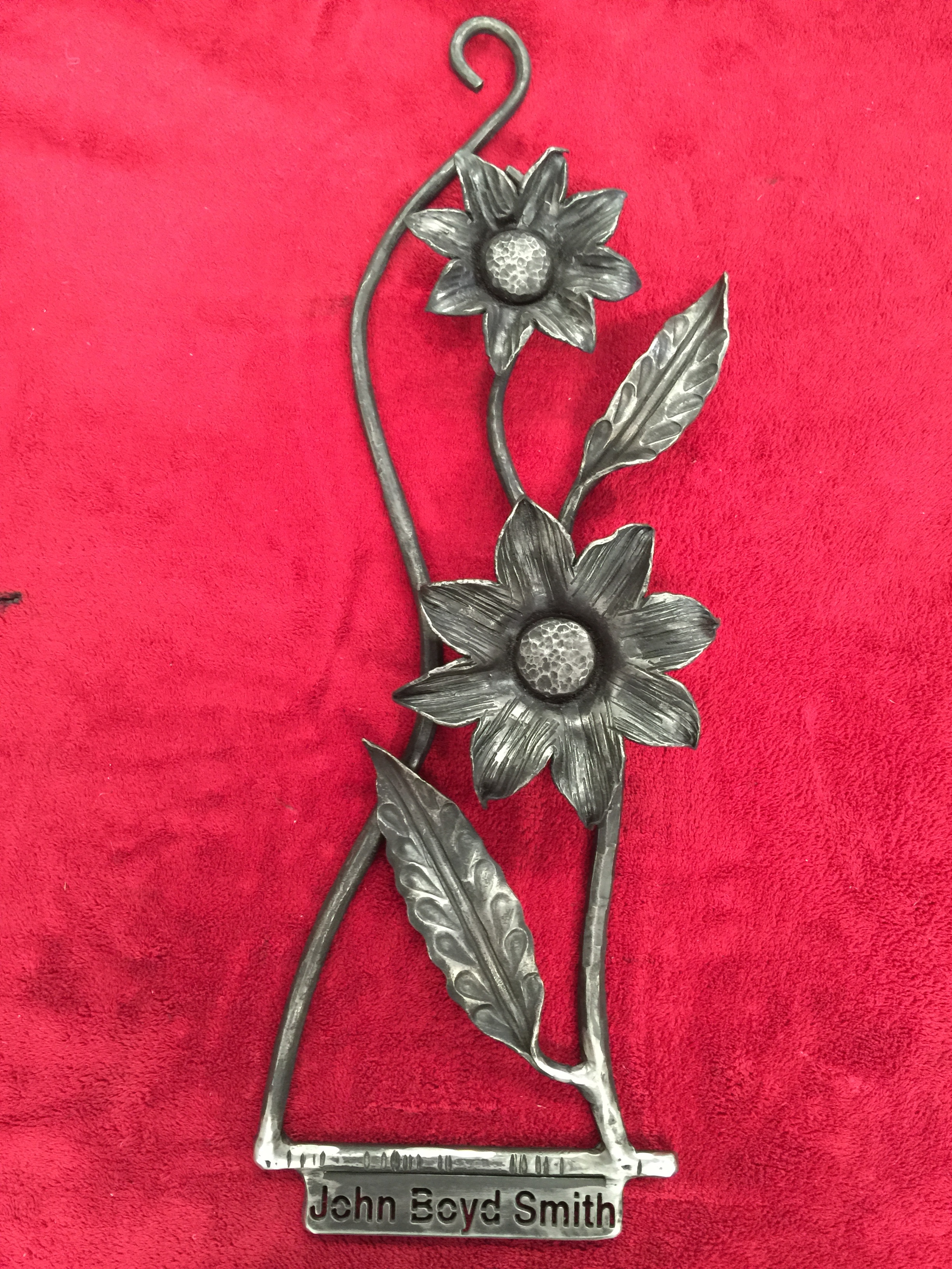 Wrought Iron Camellia Wall Hanging for Sale $350.00* Call or Contact Us for more information. *(excluding shipping & tax)