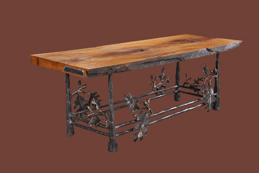 Oak Table w/ Wrought-Iron Oak Leaves  $1,500.00* Call or Contact Us for more information. (excluding shipping and tax)